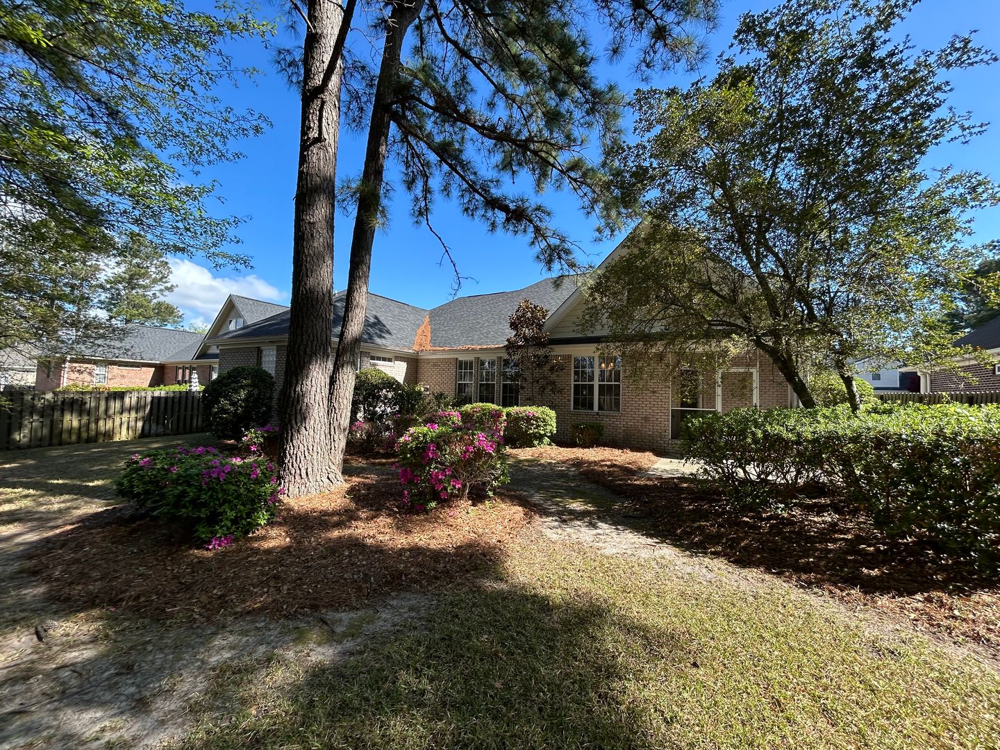 This 4 bedroom, 3 bath single-family home is located in the charming neighborhood of Oak Ridge at Plantation Landing. Minutes from the restaurants, parks, and shopping centers of Porters Neck, this charming rental is ideal for a small family. The primary bedroom includes an ensuite bathroom and walk-in closet, and the kitchen is upfit with modern appliances for cooking and a cozy dining room for hosting. A large living room area with a fireplace faces an expansive backyard, landscaped with blooming azalea bushes and dogwood trees. A screened-in patio sits just off the dining room and kitchen, with plenty of space for outdoor seating or grilling. The home includes a two-car garage with additional parking in the driveway, and a front porch with seating. Tenants will be responsible for all utilities, and there are washer/dryer hookups in the laundry room for tenants to install their own units. No pets.